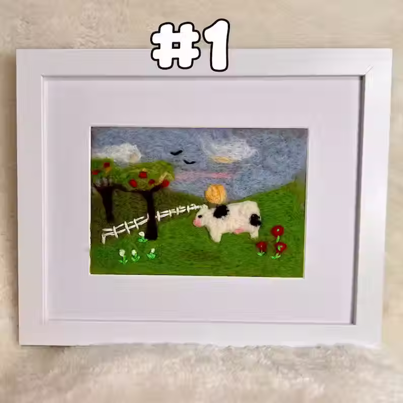 One-of-a-Kind, Wool Needle Felted Cow Landscape